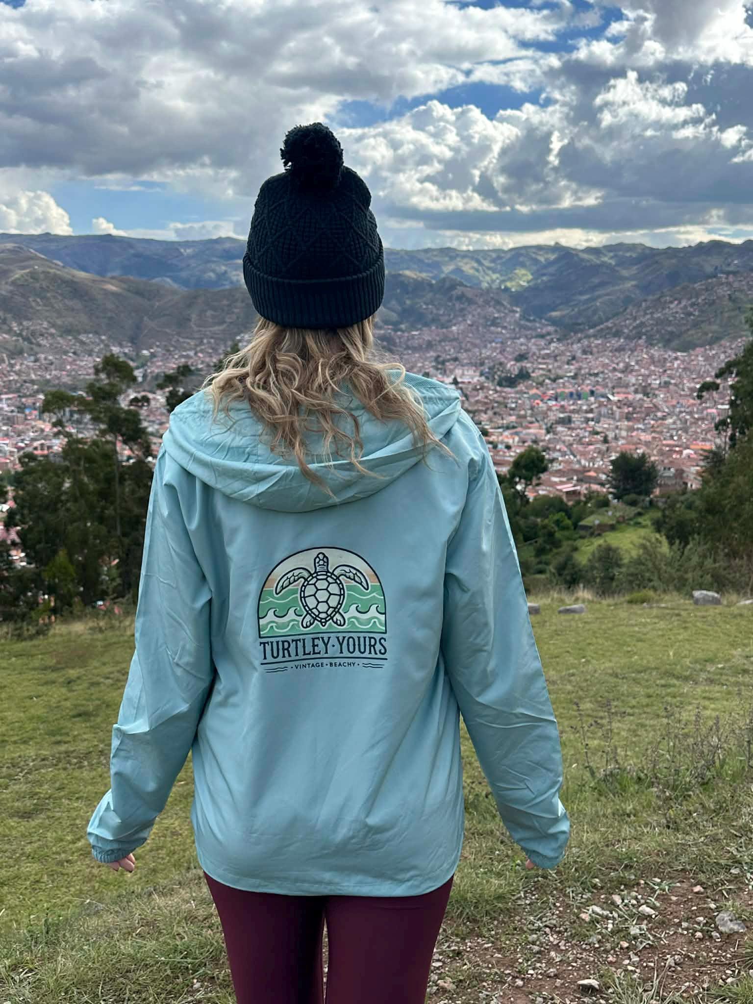 Turtley Yours started as a sea turtle obsession and evolved into a beachy little brand that believes in protecting what we love. A portion of proceeds supports ocean and marine life education and conservation efforts in coastal communities. So when you wear this windbreaker, you’re not just making a statement—you’re making a difference.