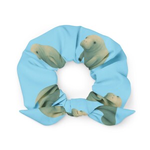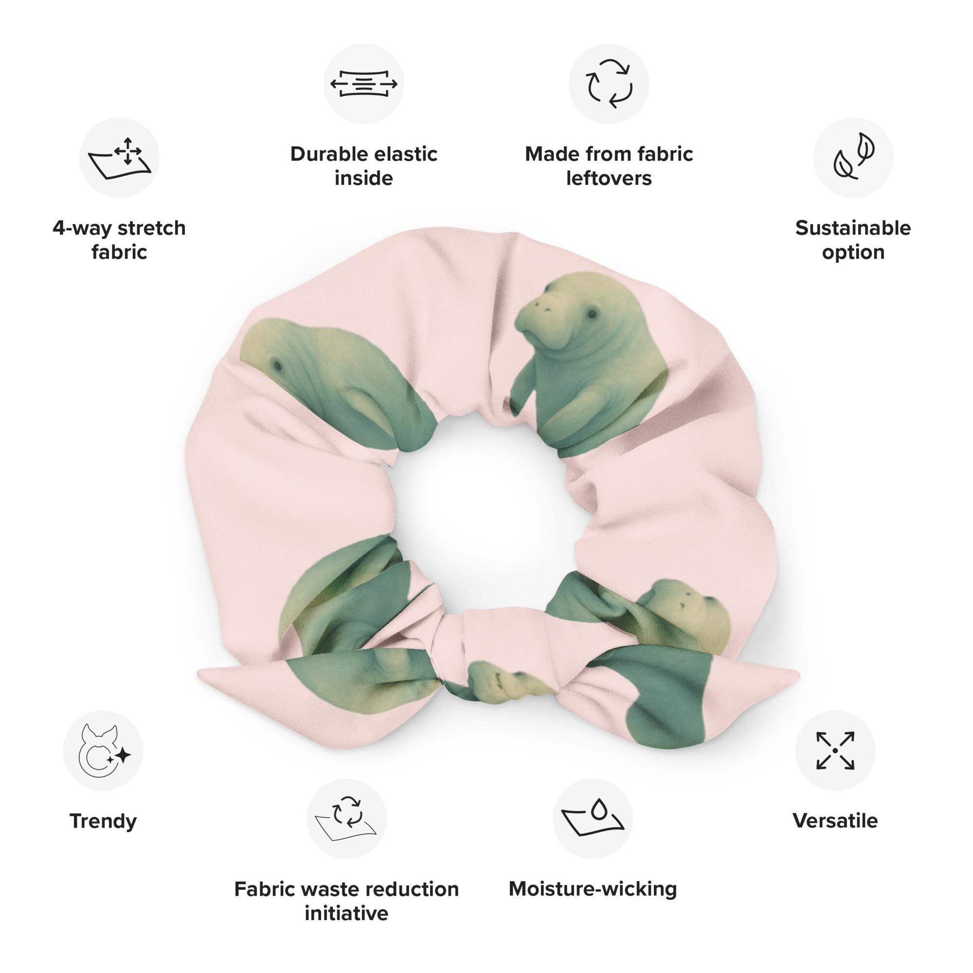Bring a splash of coastal calm to your day with our Manatee Recycled Scrunchie. Made from recycled materials and featuring your favorite gentle sea cow, this soft and stretchy scrunchie is as kind to your hair as it is to the planet.